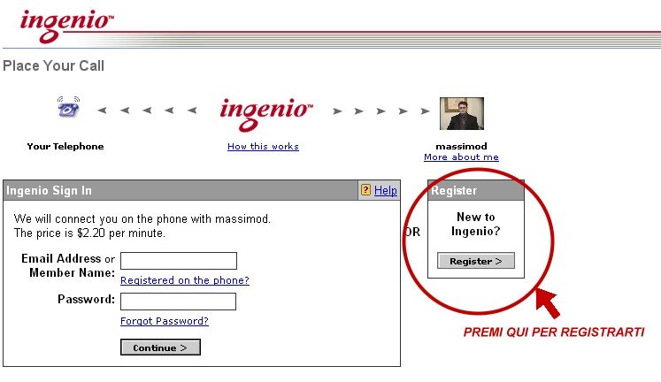 Premi con il mouse sul bottone "Register"