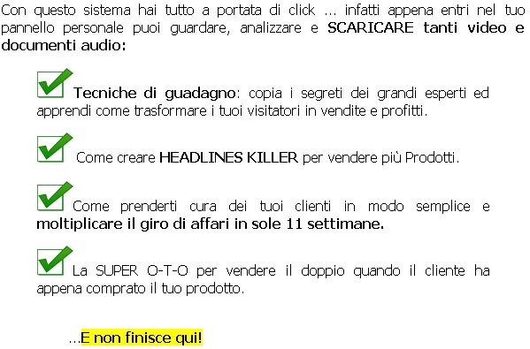 Nel tuo pannello riservato ricevi dei metodi aggiuntivi per sviluppare le tue vendite.